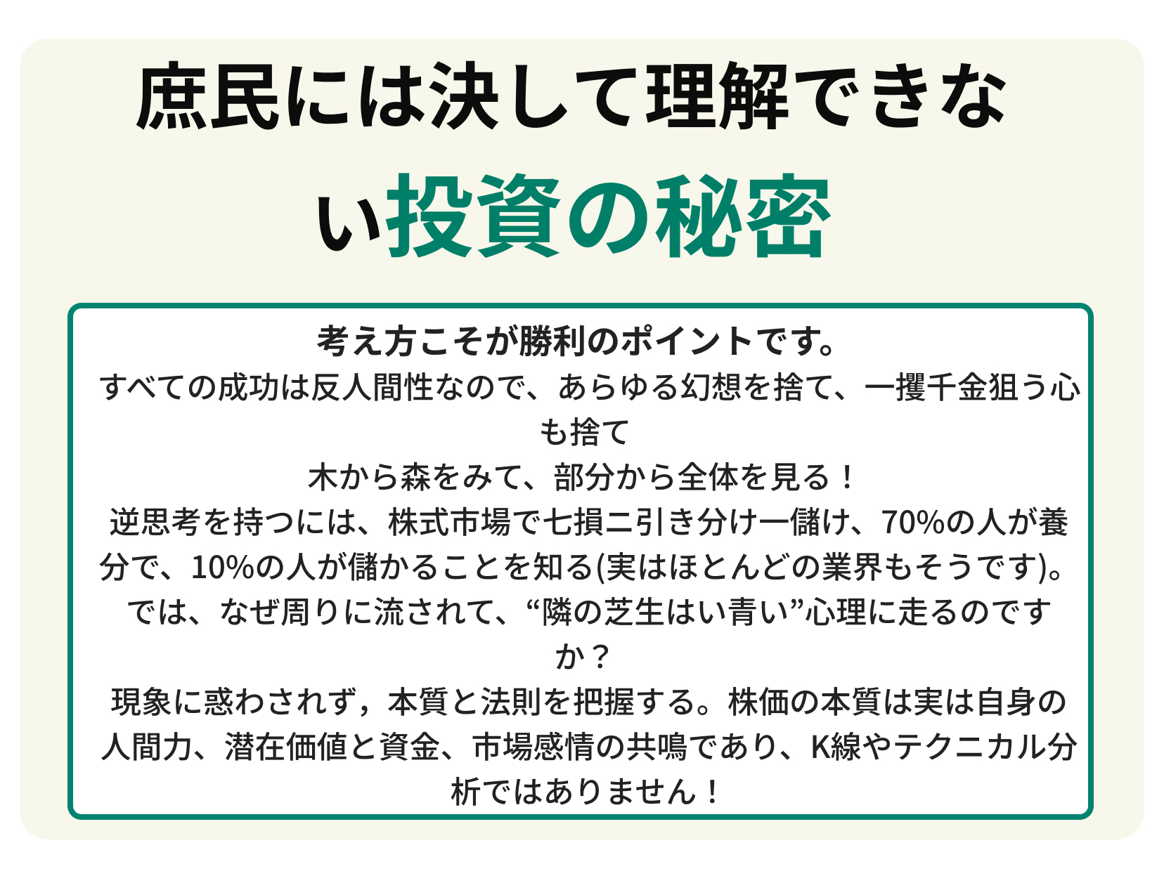 「株式市場で勝つためには、知識と戦略が必要です。私はその両方をあなたに伝えます。」